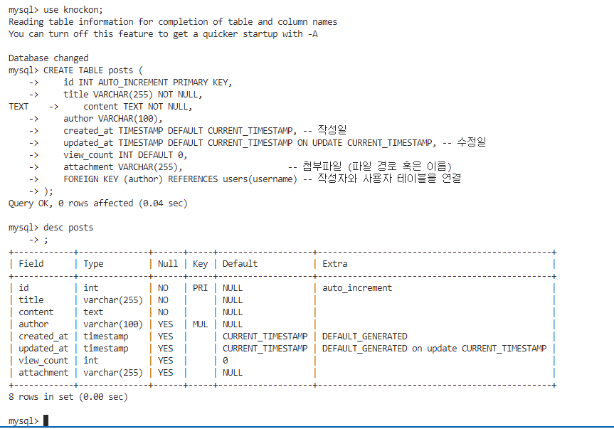 created_at TIMESTAMP DEFAULT CURRENT_TIMESTAMP, -- 작성일