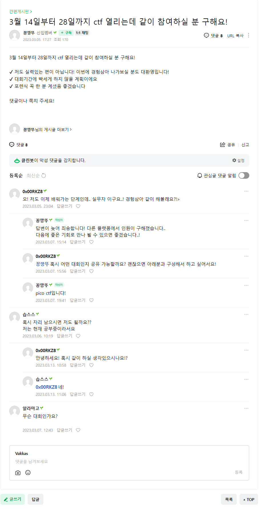 아무 글이나 하나 들어가보자