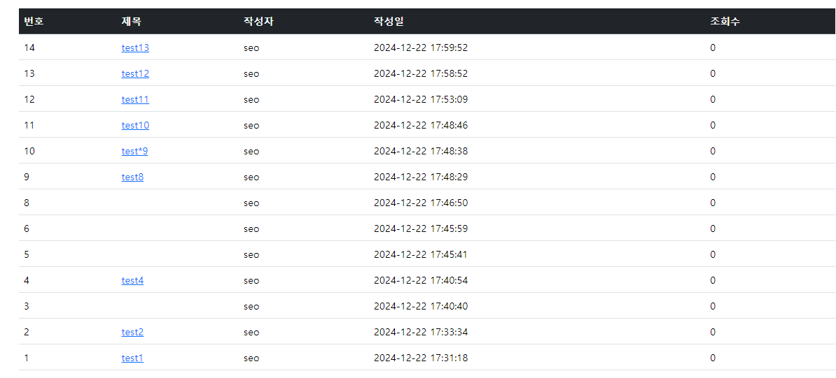 이렇게 게시글에 글이 등록이 되었다는 것을 확인할 수 있다.