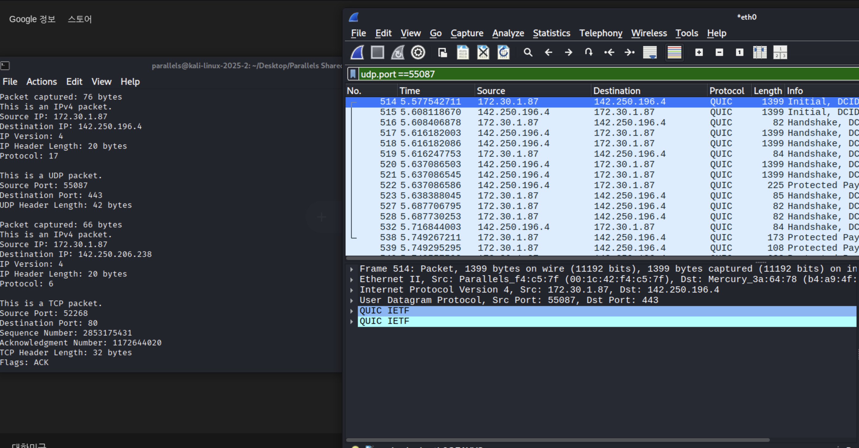 이렇게 설정하고 make후에 실행하고 와이어샤크랑 비교해보면서 확인해보자.